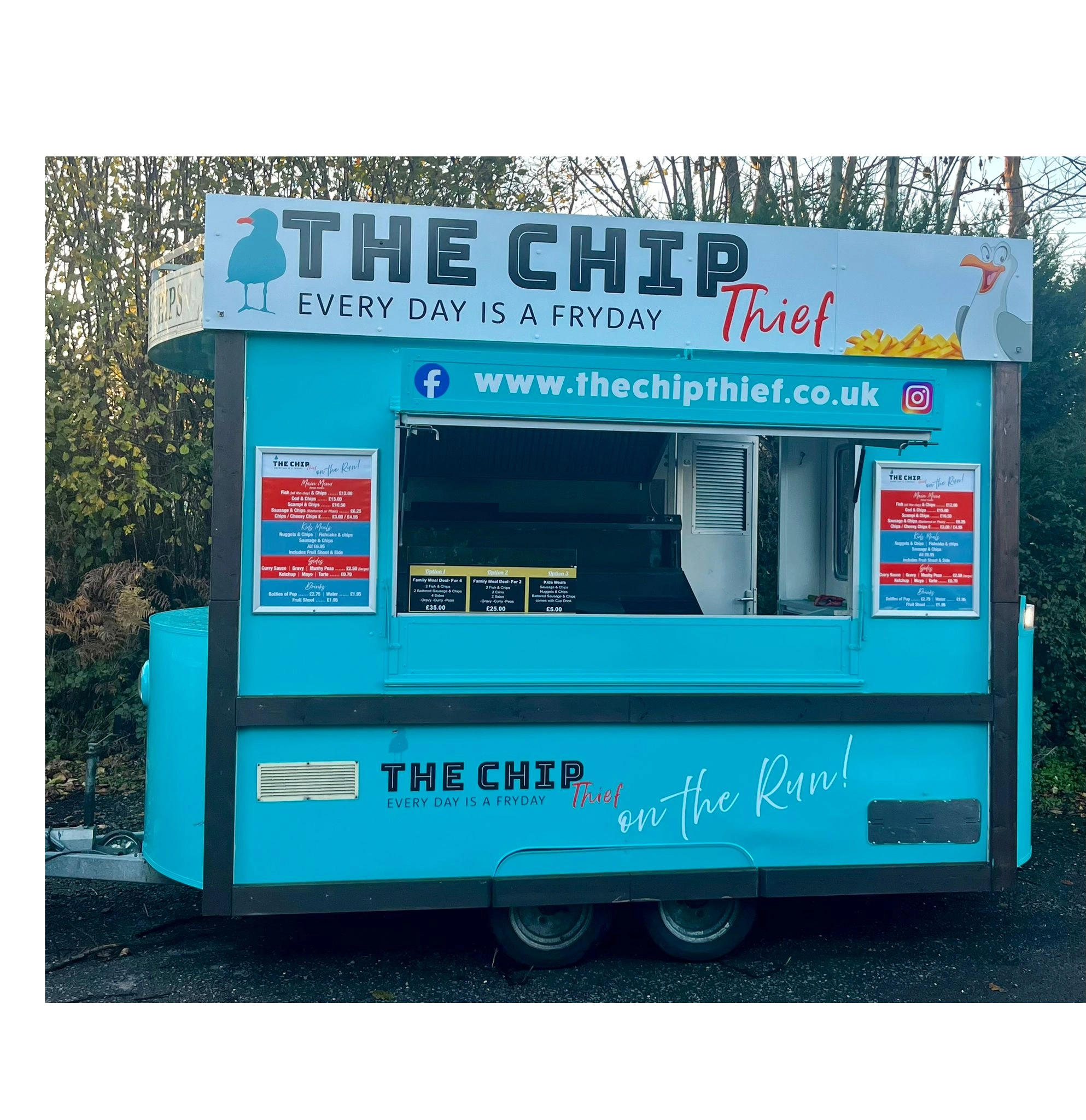 Perfectly designed to allow us to bring our famous fresh fish and chips to an event near you, The Chip Thief On the Run is available for private hire.